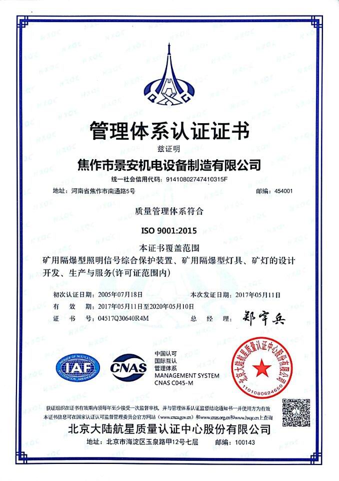 焦作市景安機(jī)電設(shè)備制造有限公司(原焦作市無(wú)線電一廠),是國(guó)家重點(diǎn)生產(chǎn)礦用防爆電子電器產(chǎn)品的專業(yè)企業(yè),全國(guó)煤炭行業(yè)機(jī)電產(chǎn)品定點(diǎn)生產(chǎn)單位,中國(guó)電器工業(yè)協(xié)會(huì)防爆電氣分會(huì)理事,市級(jí)礦用隔爆型工程技術(shù)中心,公司占地30000平方米,廠房10000平方米,ISO9001:2008質(zhì)量管理體系和A級(jí)計(jì)量認(rèn)證企業(yè)。